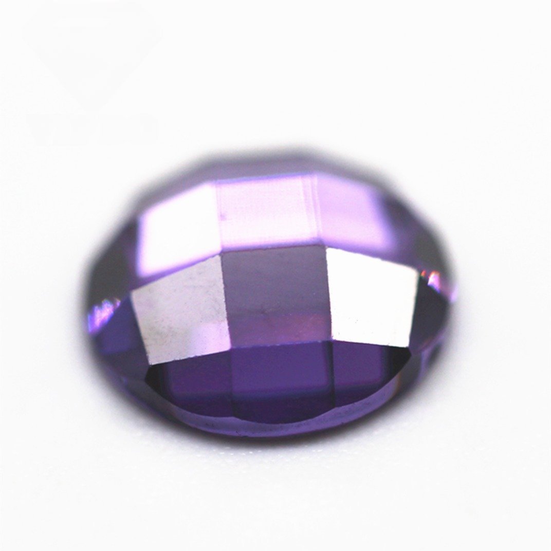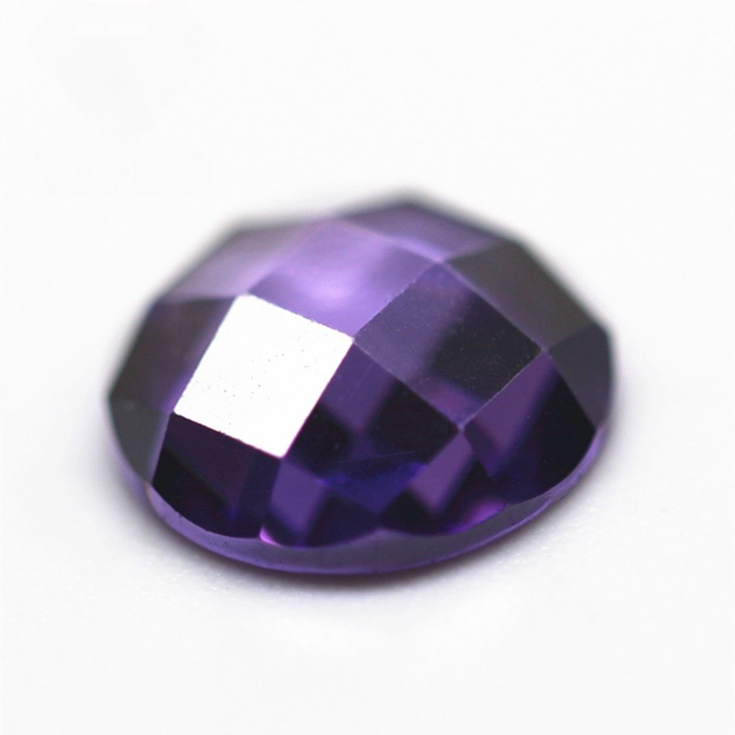 3-12mm Round Flat Back Checker Board Cut Amethyst/dark Amethyst Cubic Zirconia Loose Gemstone Synthetic Single Grid Cut CZ Stone