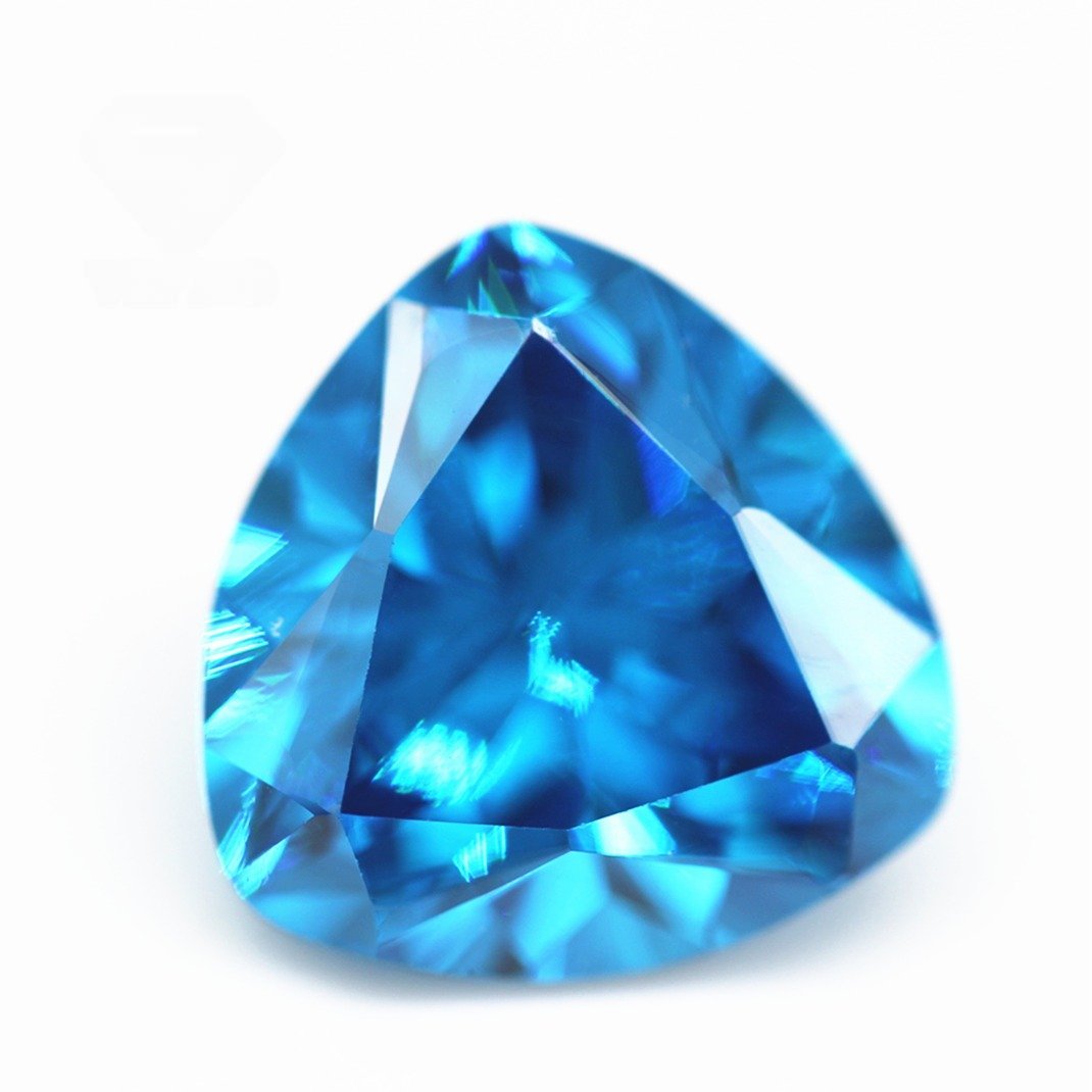 5A Quality 3*3-12*12mm Machine Cut Trillion Shape Aqua Blue/blue Topaz Cubic Zirconia Gemstones Synthetic Trillion Cut CZ Stones
