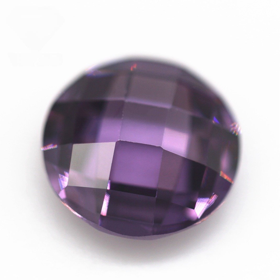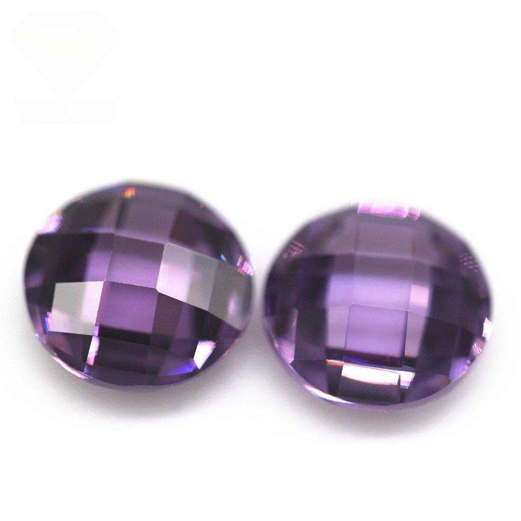AAAAA 3mm-12mm Round Double Checker Board Cut Amethyst/dark Amethyst Cubic Zirconia Loose Gems Synthetic Round Grid Cut CZ Stone