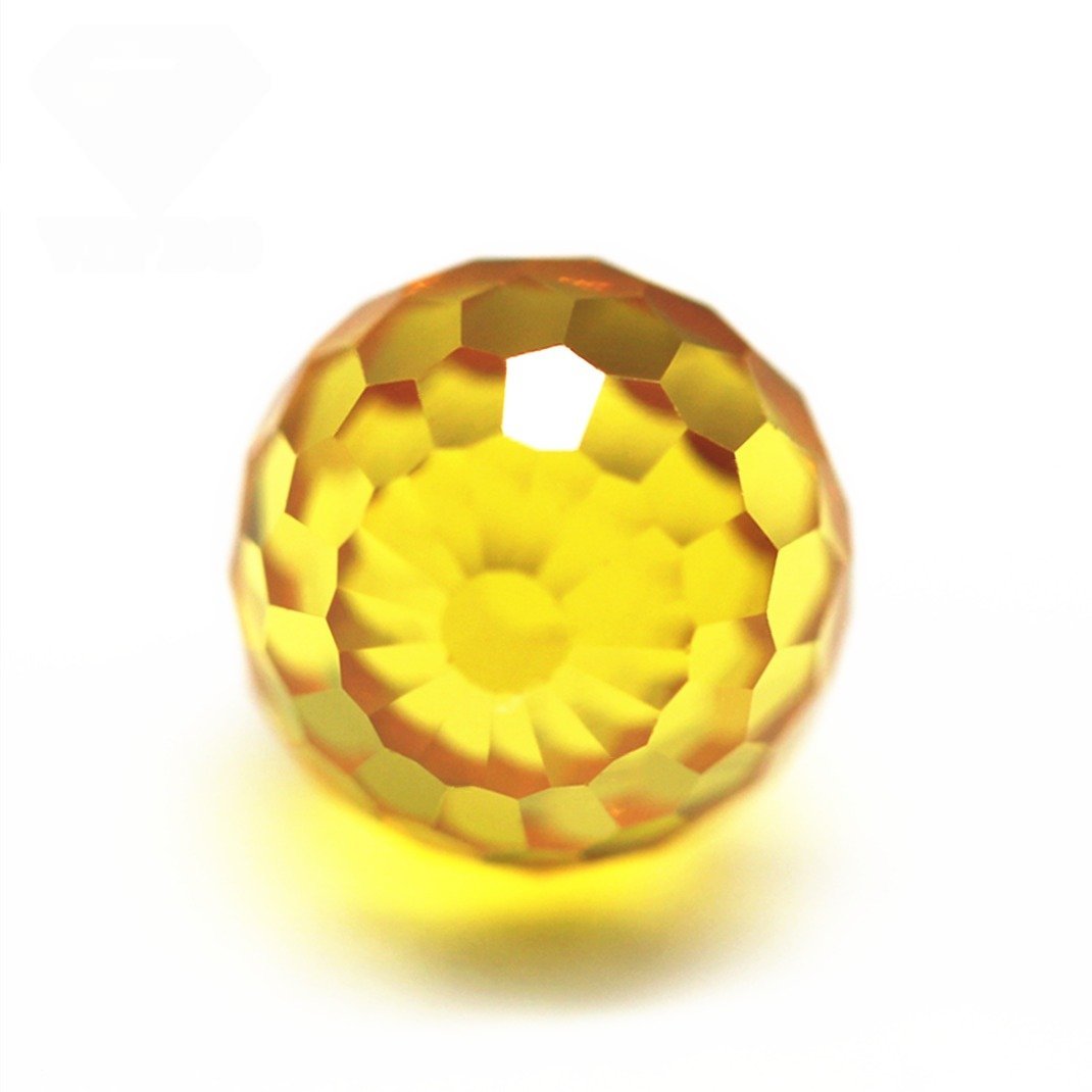 Free Sample Gemstone 3mm-12mm Round Faceted Beads Golden Yellow Cubic Zirconia Loose Gems Synthetic Faceted Ball Beads CZ Stones