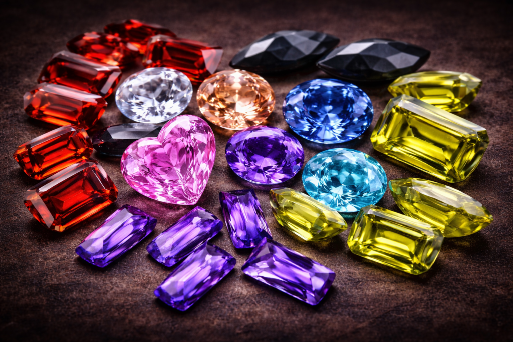 Cubic Zirconia (CZ) is a lab-created zirconium dioxide crystal widely used in fine and fashion jewellery. It is known for high brilliance, clarity, and consistent manufacturing—making it suitable for calibrated bulk supply.